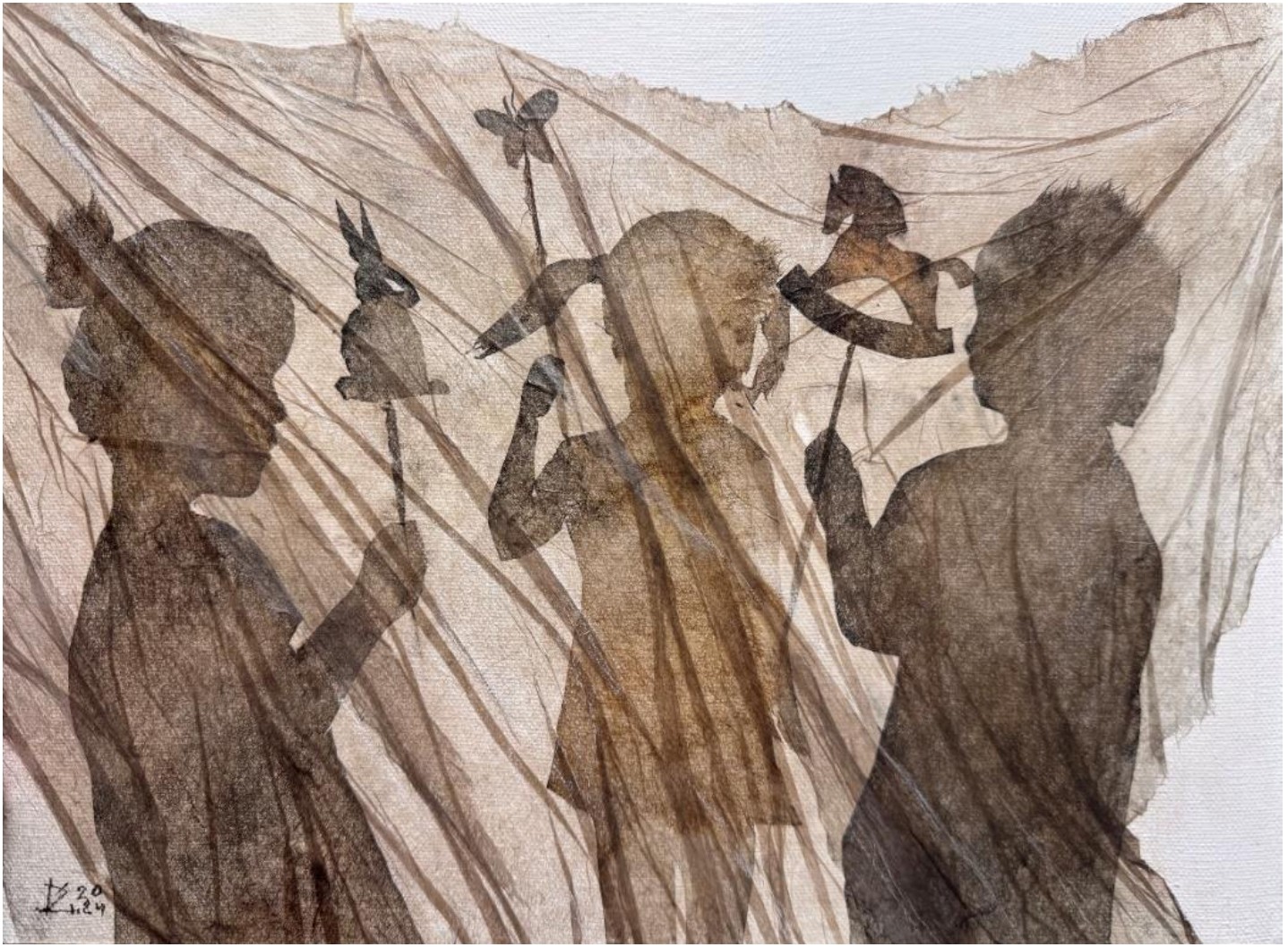 35х25 см | смешанная техника, коллажная живопись, японская бумага ручной работы, акрил, красители, чернильные карандаши | 2024