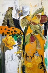 Цветок в центре каждой композиции задает не только цветовой, но и смысловой тон работы: художница изображает мамин физалис, бабушкин алоэ, лотос, который сфотографировала подруга. Сформировав коллаж, Дарья переводит его в живопись. Так «склеенные» обрывки воспоминаний и впечатлений соединяются в целостном, неделимом образе.