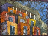 Оттиск масляными красками гостиницы в Абрау Дюрсо.
