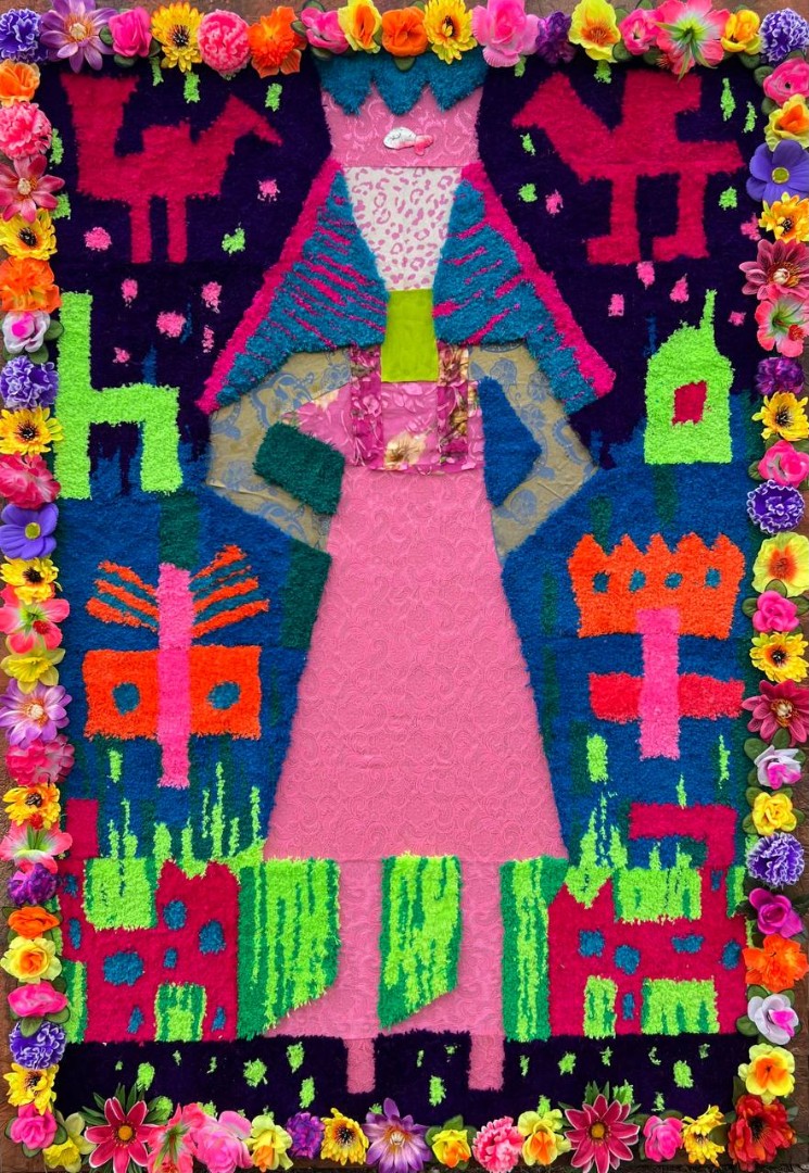 Она в окружении своих тотемных животных — котиков. Бабочка и цветок символизируют её красоту и лёгкость. Дом и трон — её стабильность и силу, а над ней — её стражи-защитники. Такие принцессы встречаются у нас на каждом шагу.