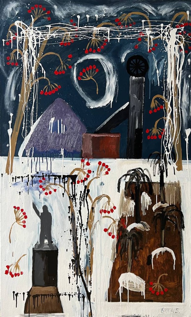 Работа «Вид из окна» — рассказ о детстве, которое прошло в городе Шахты. Много подобных городов есть в России, и каждый был чьим-то детством. Не важно, насколько там было красиво, важно, что были открытия, мечты, восторг и желание исследовать мир. Объекты картины — это знаковые элементы того времени и того восприятия.