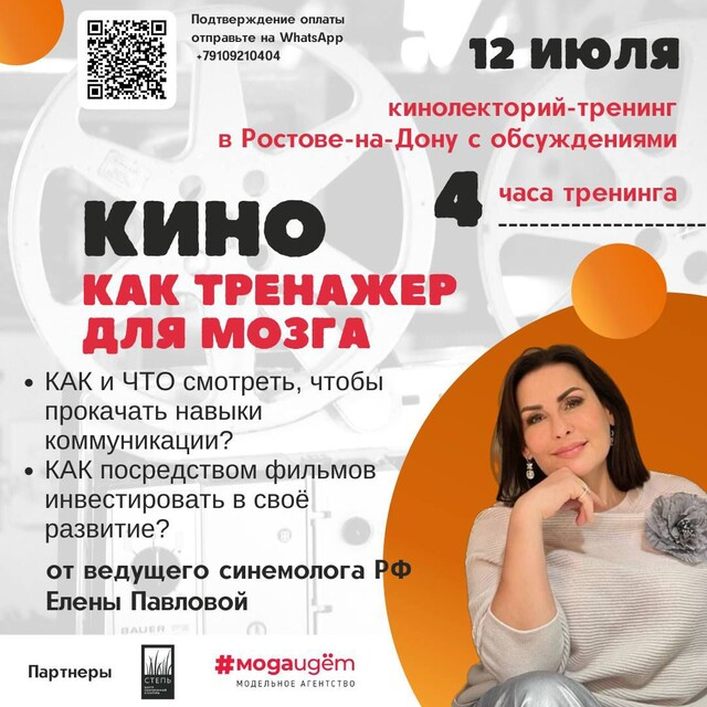 Регистрация на закрытый кинолекторий-тренинг после оплаты по QR коду на афише. Подтверждение оплаты отправьте на WhatsApp : +79109210404